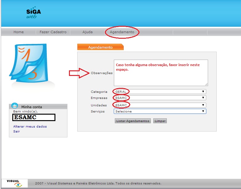 1º) Você deve realizar um cadastro criando um login e senha para realizar seus agendamentos.