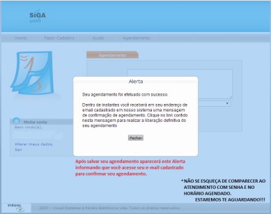 3º) Na finalização do agendamento on-line, você deve verificar seu e-mail para que confirme seu agendamento. Sem a confirmação o agendamento não estará realizado.
